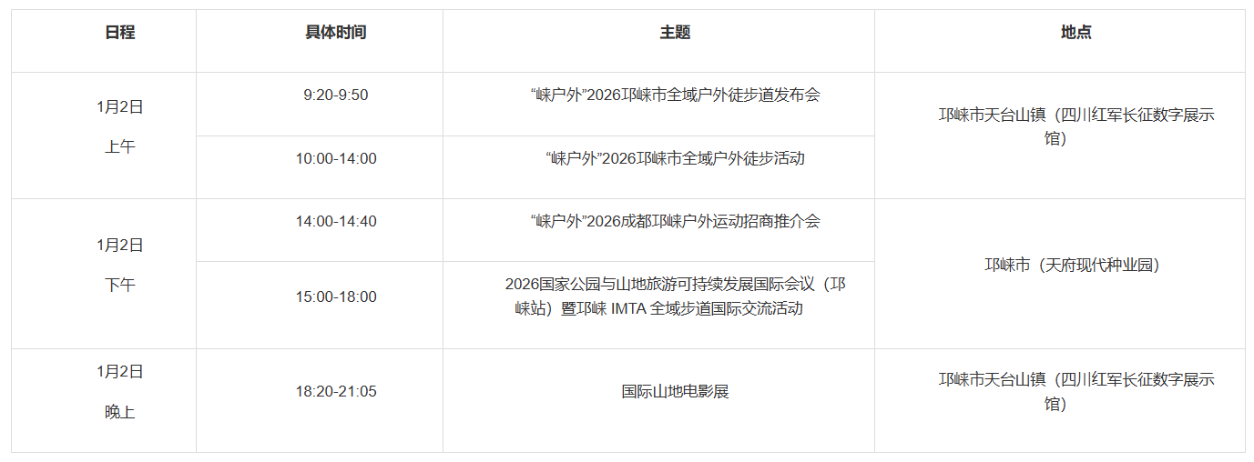 2026国家公园与山地旅游可持续发展国际会议(邛崃站)暨邛崃 IMTA 全域步道国际交流活动